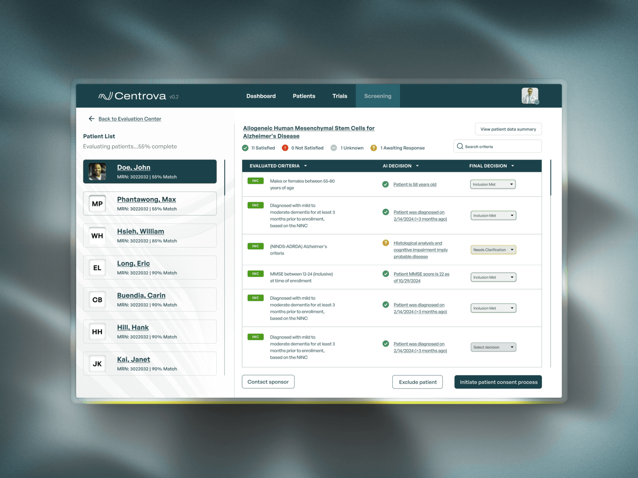 Revolutionized the clinical trial recruitment process with AI, increasing the speed of screening without compromising on accuracy.